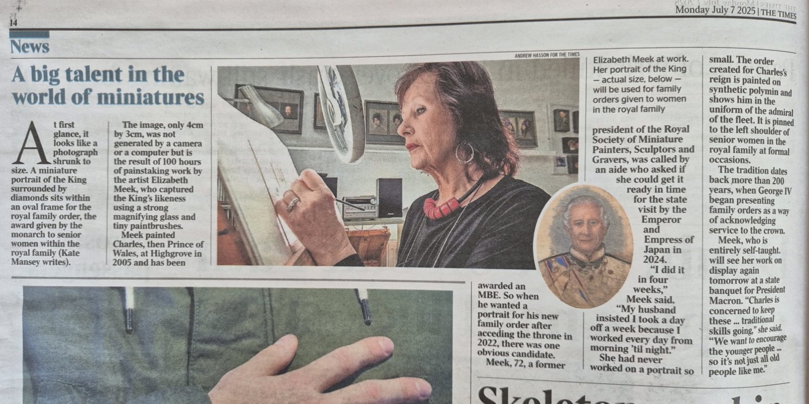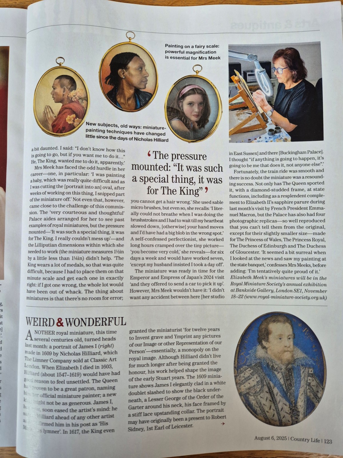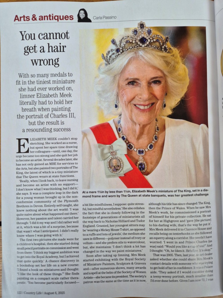 The portrait was based on a photograph taken in 2023 by Hugo Burnand. Painted in oil on polymin, the miniature measures 4x3 cms.